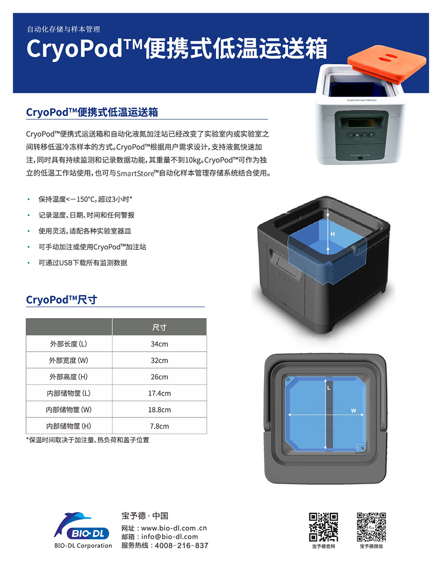 CryoPod便攜式運送箱及加注站